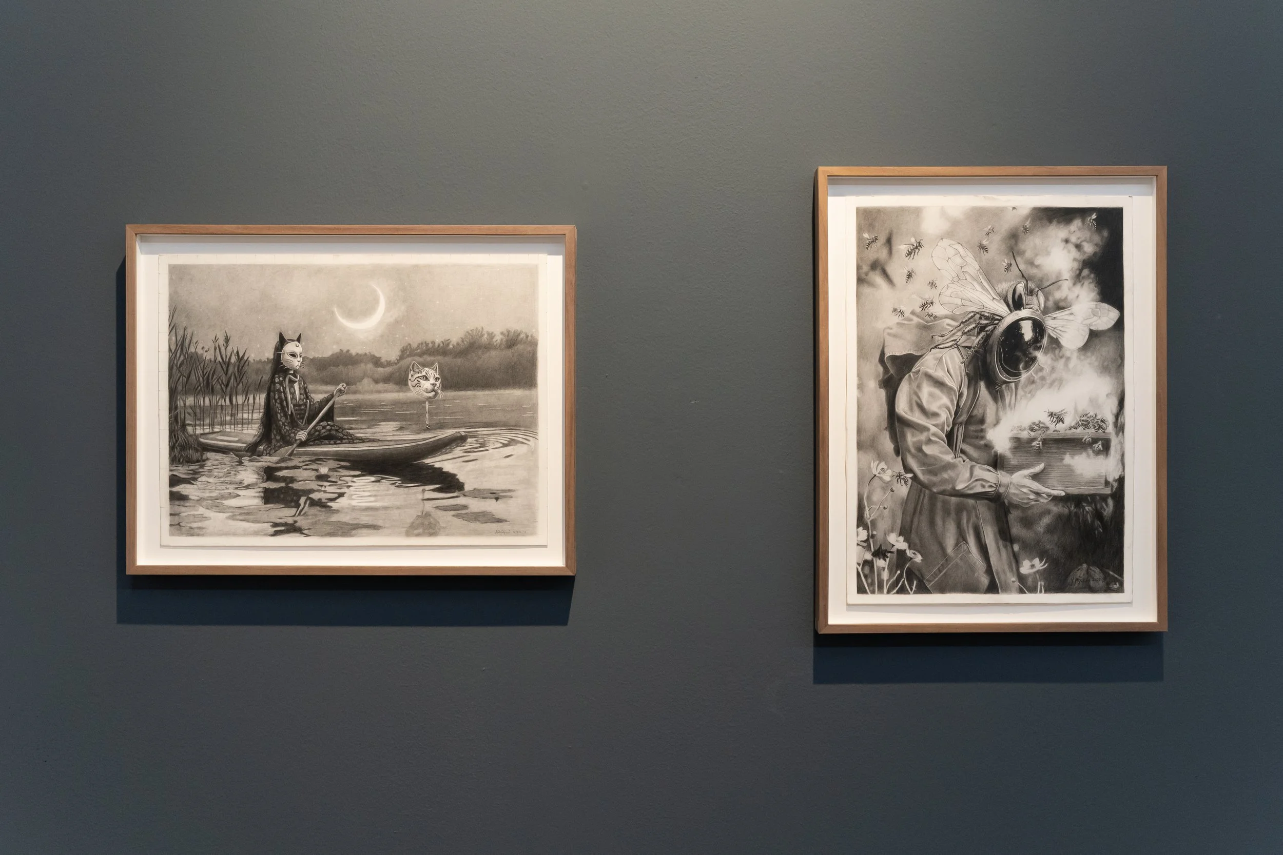 “Waxing Crescent” and “Mellarius” by Florin Dragoi, captured by Andrei Infinit at ArtEncounters Foundation in Timisoara, during “Another Time has Other Lives to Live” exhibition, October 2025.